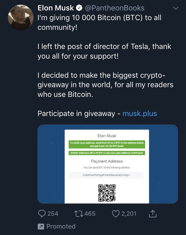 Bitcoin is often mocked by the wider cryptocurrency sector for its older technology compared to some of its newer peers and now elon musk, a serial. Those messages will contain links to other sites which will most likely infect you with malware or will ask for cryptocurrency in exchange for doubling it. Today we conduct a little due diligence against an apparent crypto giveaway promoted by elon musk, and. And what's happening with the stolen money? By mythili sampathkumar february 3, 2020.
